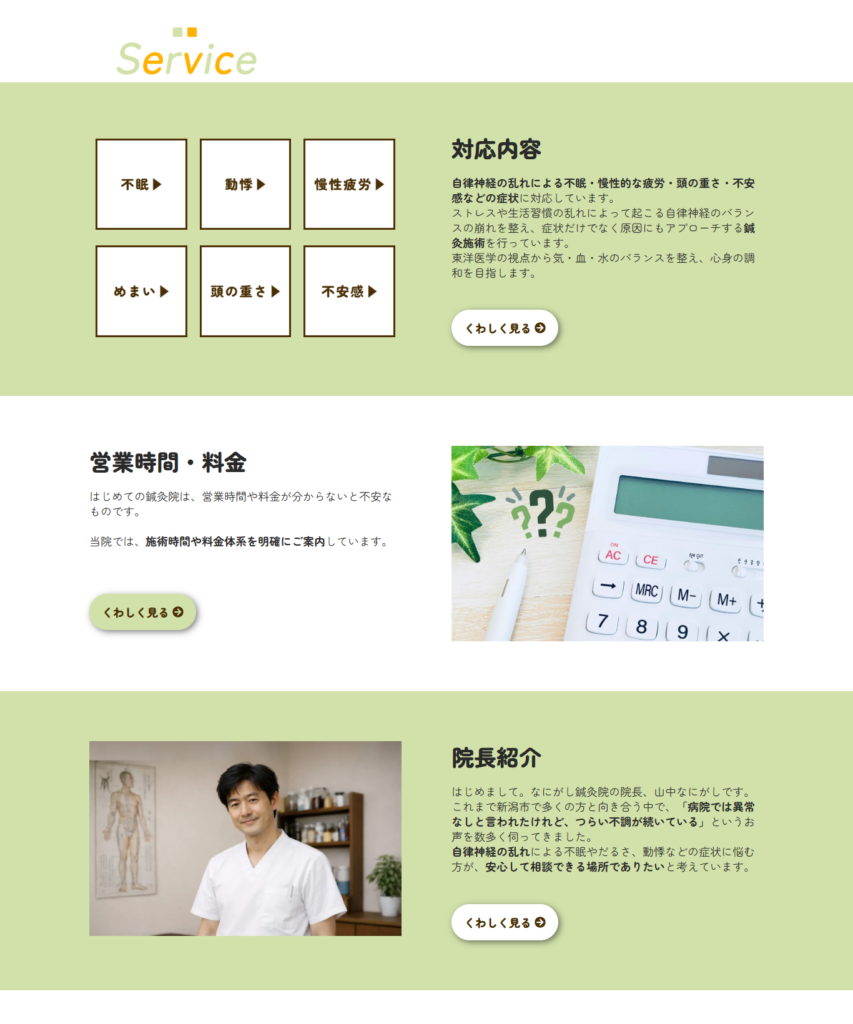 鍼灸院や治療院のホームページでは、