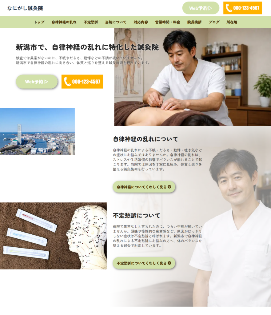治療院や鍼灸院のホームページでは、