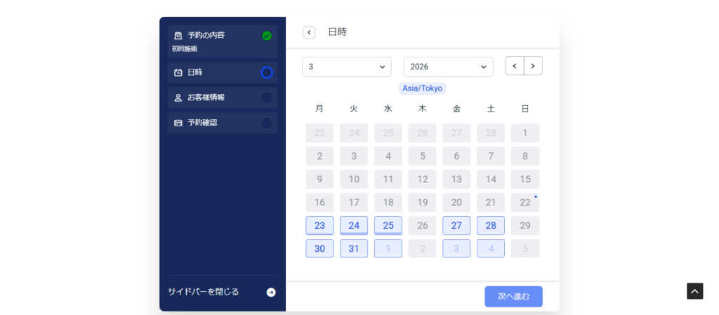 今回の鍼灸院ホームページ制作では、顧客と管理者双方の利便性を高めるために、Web予約機能を導入しました。
