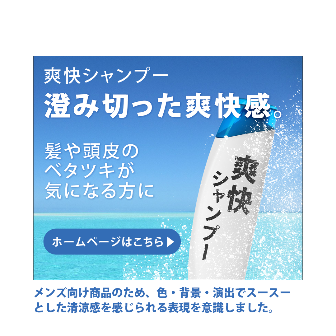 ということで、このデザインでは、「白衣」の色である白色と、「知性」を思わせる青系色のグラデーションを背景に採用することにより、権威性・医療系・清潔感といった印象を持たせてみました。商品名のテキストには高級感のある金文字を使用してプレミア感を出しつつ、医療機関で採用されている旨のテキストは黒文字で読みやすく表示し、専門性が伝わるように心がけました。